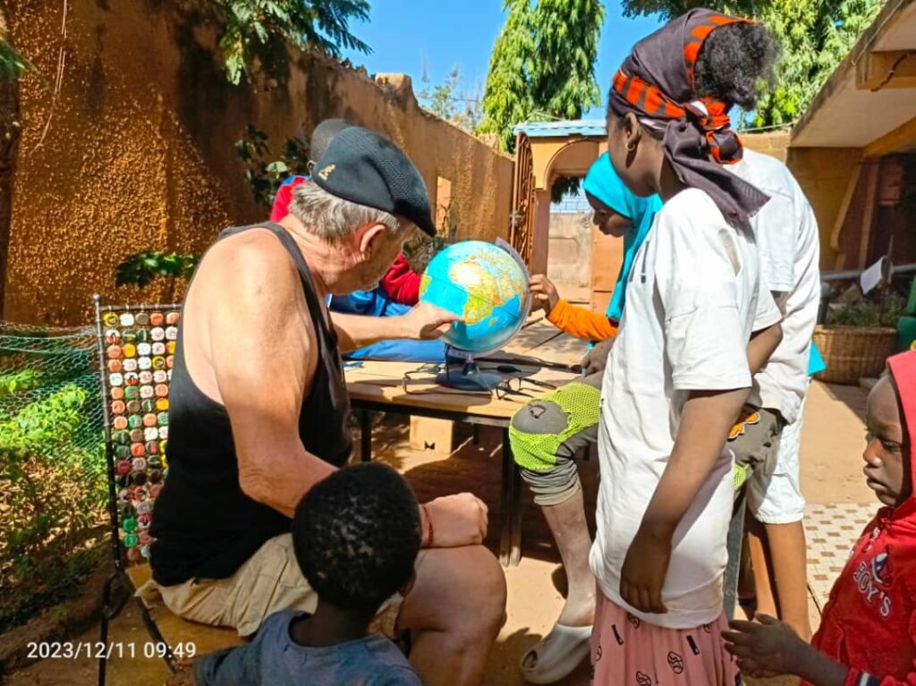 Entre ce centre qui soutient les enfants et les femmes qui ont fui les groupes armés violents, Daniel Baumelin, participe à l’alphabétisation et la culture.