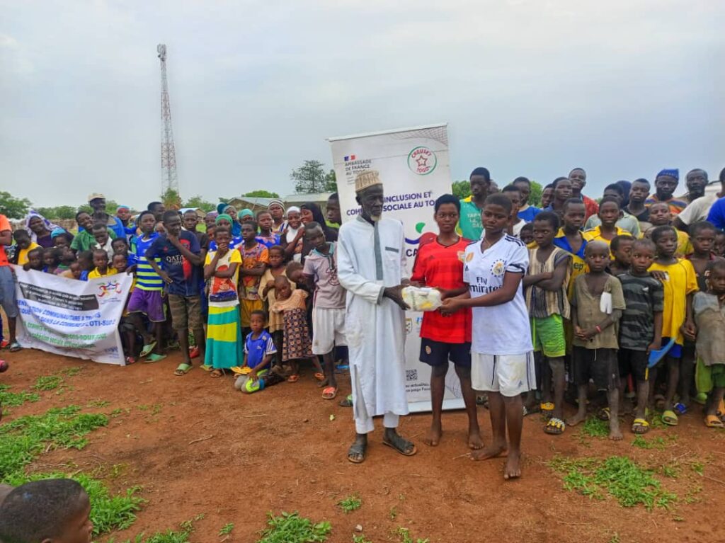 Dans le cadre du projet de Contribution de la société civile au renforcement de l’inclusion et de la cohésion sociale à travers la pratique du sport, des matchs de football ont été organisés à Kadjitieri 2 et Tababou, deux localités des préfectures de l’Oti et Oti-sud au Togo. Ce projet, soutenu techniquement et financièrement par l’ambassade de France via le Fond Équipe France pour les Organisations de la Société civile (FEF-OSC), a été mis en œuvre en collaboration avec plusieurs acteurs de la société civile, notamment l’association des Jeunes pour l’insertion Sociale (AJIS), CREUSET TOGO, ainsi que les communes de l’Oti 2 et Oti-sud 2.