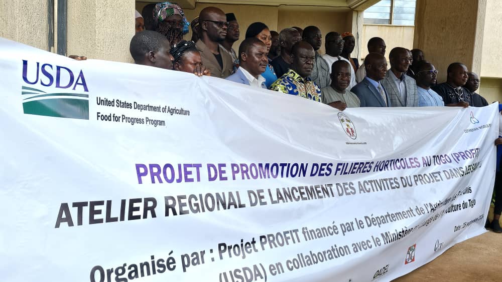 S’est ouvert à Dapaong, chef-lieu de la région des Savanes ce 26 septembre 2024, un atelier régional de lancement des activités du projet de « Promotion des Filières horticoles au Togo ( PROFIT) ». Ce projet est financé par le département du ministère de l’Agriculture des Etats Unis d’Amérique (USDA)en collaboration avec le Ministère en charge de l’Agriculture du Togo. Prennent part à cet atelier les acteurs impliqués dans la mise en œuvre du projet et les autorités de la région. Le lancement régional a été présidé par le préfet de Tone, Yendoukoa Tchimbiandja DOUTI, en présence des préfets de Cinkassé, de Tandjoare, de l’Oti et de l’Oti Sud. Etaient aussi présents le président du conseil régional de la chefferie traditionnelle des savanes, les directeurs régionaux des services déconcentrés de l’Etat, le représentant du coordonnateur régional de PURS, le secrétaire général de la mairie de Tone 1, les représentants des institutions de microfinance partenaires et les responsables des coopératives représentant les bénéficiaires. L’objectif de ce projet est de promouvoir des filières de piments, de gombo et du manioc et de contribuer à la modernisation de l’Agriculture au Togo dans le contexte du changement climatique.