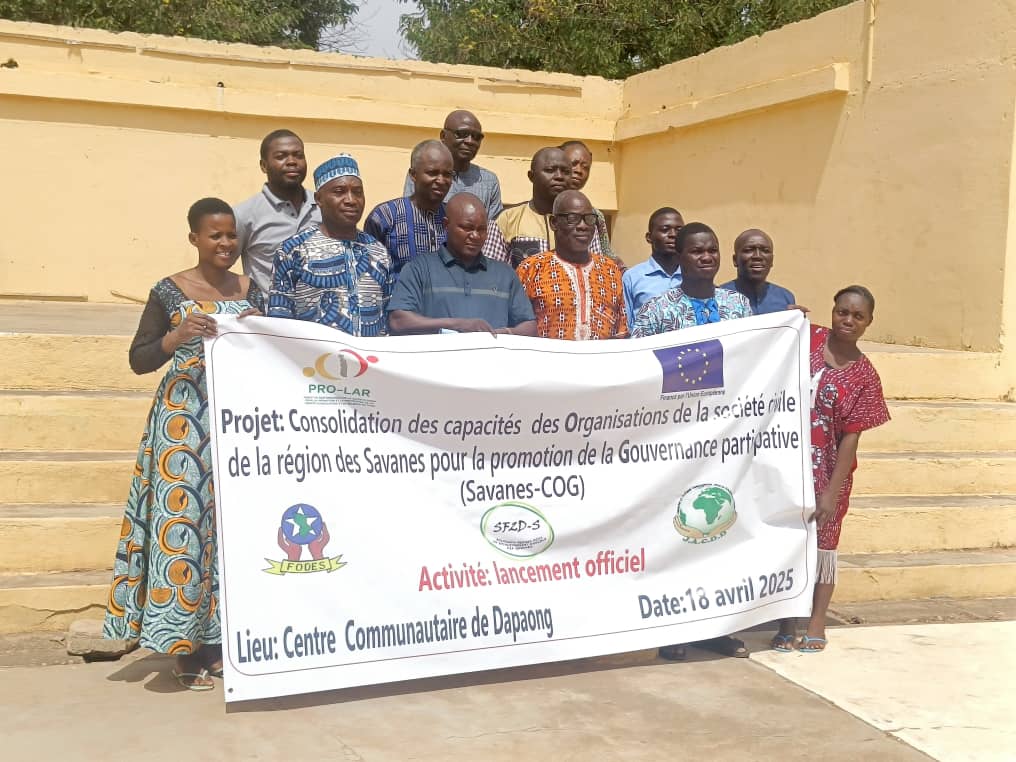 Dapaong a abrité ce 18 avril 2025, le lancement officiel du sous-projet « Consolidation des capacités des Organisations de la société civile de la région des Savanes pour la promotion de la gouvernance participative : Savanes-COG ». Financé par l’Union européenne, le sous-projet SAVANES-COG est une initiative du consortium PRO-LAR, mis en œuvre par le consortium FODES-SF2DS-JACCD en faveur des collectivités locales de la région des Savanes. Ont pris part à ce lancement, le représentant du préfet de Tone, les adjoints aux maires de Tone 1 et l’Oti1, en présence du coordonnateur du FODES, Laguatissoa Bangbar.