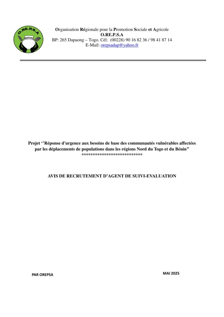 Organisation Régionale pour la Promotion Sociale et Agricole (O.RE.P.S.A)