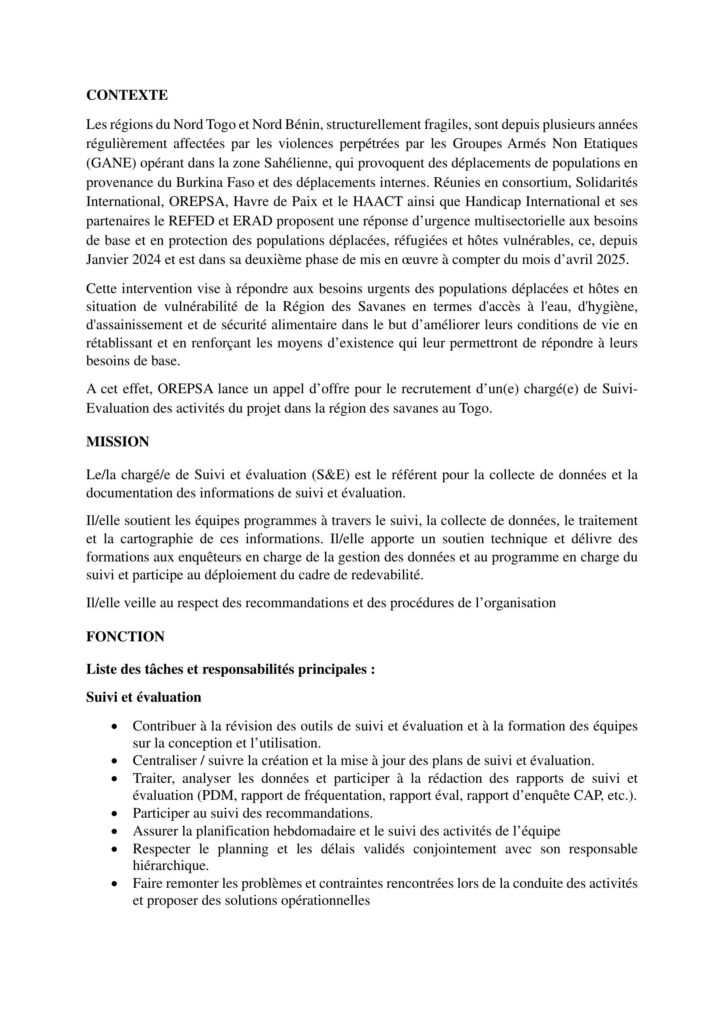 En consortium avec Solidarités International, Havre de Paix, HAACT, Handicap International, REFED et ERAD, OREPSA intervient depuis janvier 2024 pour répondre aux besoins en eau, hygiène, assainissement et sécurité alimentaire. La deuxième phase du projet démarre en avril 2025.