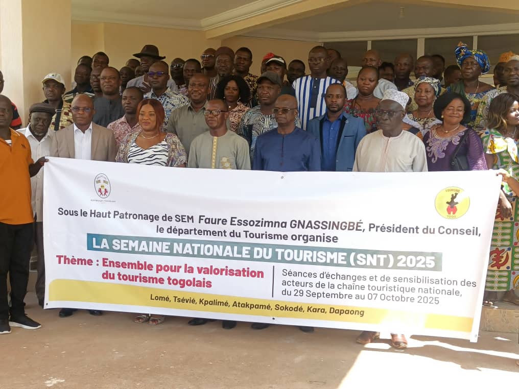 » Ensemble pour la valorisation du tourisme togolais » est la thématique de la semaine nationale du tourisme (SNT) 2025 qui a réuni les acteurs du tourisme ce 06 Octobre 2025, à Dapaong au cours d’un atelier. C’était en présence des autorités communales et administratives ainsi que les acteurs de la chaine du tourisme. Cet atelier s’inscrit dans les séances d’échanges et de sensibilisation des acteurs de la chaîne touristiques nationale prévues du 29 septembre au 07 octobre 2025. « L’idée est donner envie au public togolais de consommer le tourisme national. », relève Mafissa ASSINGUIME directrice de la planification et de la promotion du tourisme