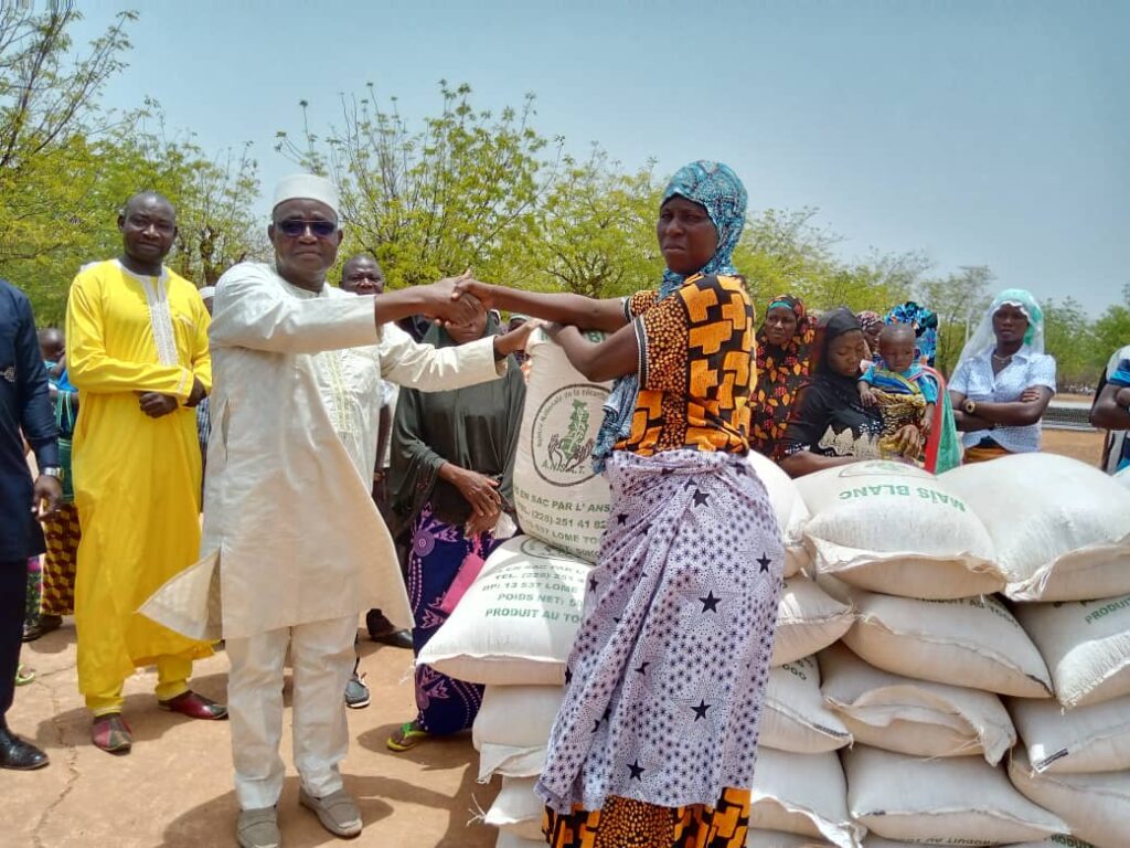La dégradation de la situation sécuritaire à l’Est du Burkina Faso et dans la préfecture de Kpendjal a provoqué une vague de déplacements des populations. La grande majorité de ces déplacées a trouvé refuge dans la ville de Dapaong et ses environs . Face à la précarité dans laquelle végètent ces derniers, des actions individuelles se multiplient pour appuyer celles du chef de l’État afin de soulager un tant soit peu les victimes. 200 sacs de 50 kg de maïs blanc, voilà la modique contribution du citoyen Ouattara Youssouf,Ex DG de la Lonato, remise ce 04 mars aux déplacées. La cérémonie de don s’est déroulée ce matin sur l’esplanade de la préfecture de Tône. C’était en présence entre autres du préfet de Tône, du Directeur Régional de l’action sociale et des bénéficiaires. Le généreux donateur a saisi l’occasion pour témoigner gratitudes et reconnaissances au chef de l’État pour ses efforts au quotidien afin de préserver l’intégrité territoriale de notre pays et maintenir la sécurité.