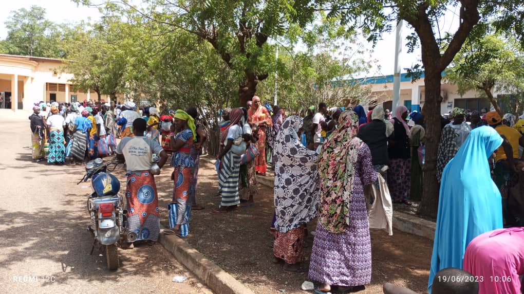 Le 19 juin 2023, lorsque l’Agence nationale de la protection civile (ANPC) demande aux réfugiés de faire les rangs, c’est pour recevoir des dons, notamment des habits. Une œuvre des bonnes volontés au profit de ceux et celles qui ont quitté leurs villages à cause des incursions armées. Avec son enfant d’à peine six mois, Zulia gagne une veste aux couleurs grises. « Je suis fière, je remercie les donateurs. Ce geste me touche, et j’en suis contente ; ce n’est qu’une étape, la prochaine fois, j’en aurai mieux », se réjouit Zulia, qui porte fièrement sa veste. Ce sont des friperies, fruit d’une donation des bonnes volontés, nous explique un agent de l’ANC. Ce matin, elles sont plusieurs centaines à faire la file indienne pour en bénéficier. Une réalité régulière qui consiste à rassembler les personnes en situation de déplacés pour bénéficier des dons en vivres et en non vivres.