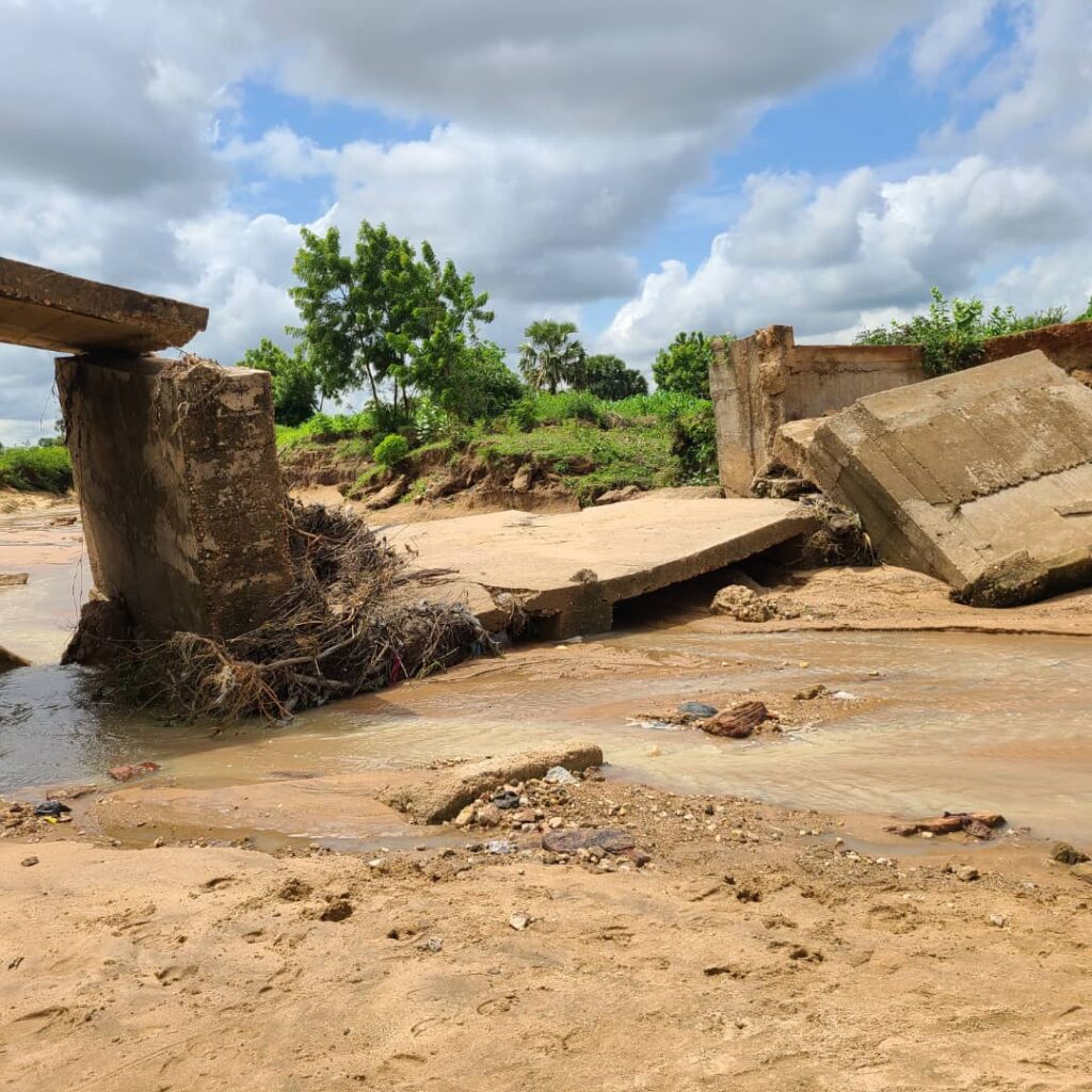 Pour celui qui emprunte cette voie pour la première fois, aucune indication ne signale le danger que présente ce grand pont totalement endommagé. Long de plus de 30m, l’ouvrage n’a pas résisté à l’eau et au temps. Le passage est impossible pour les véhicules. Les villageois expliquent que les autres usagers peuvent se débrouiller en passant dans le lit du cours d’eau mais pas avec plaisir. Des riverains affirment que pour traverser en période de crue, il faut » renverser son assiette » comme on dit ordinairement dans le milieu car rien n’est sûr qu’on pourrait atteindre l’autre rive vivant.